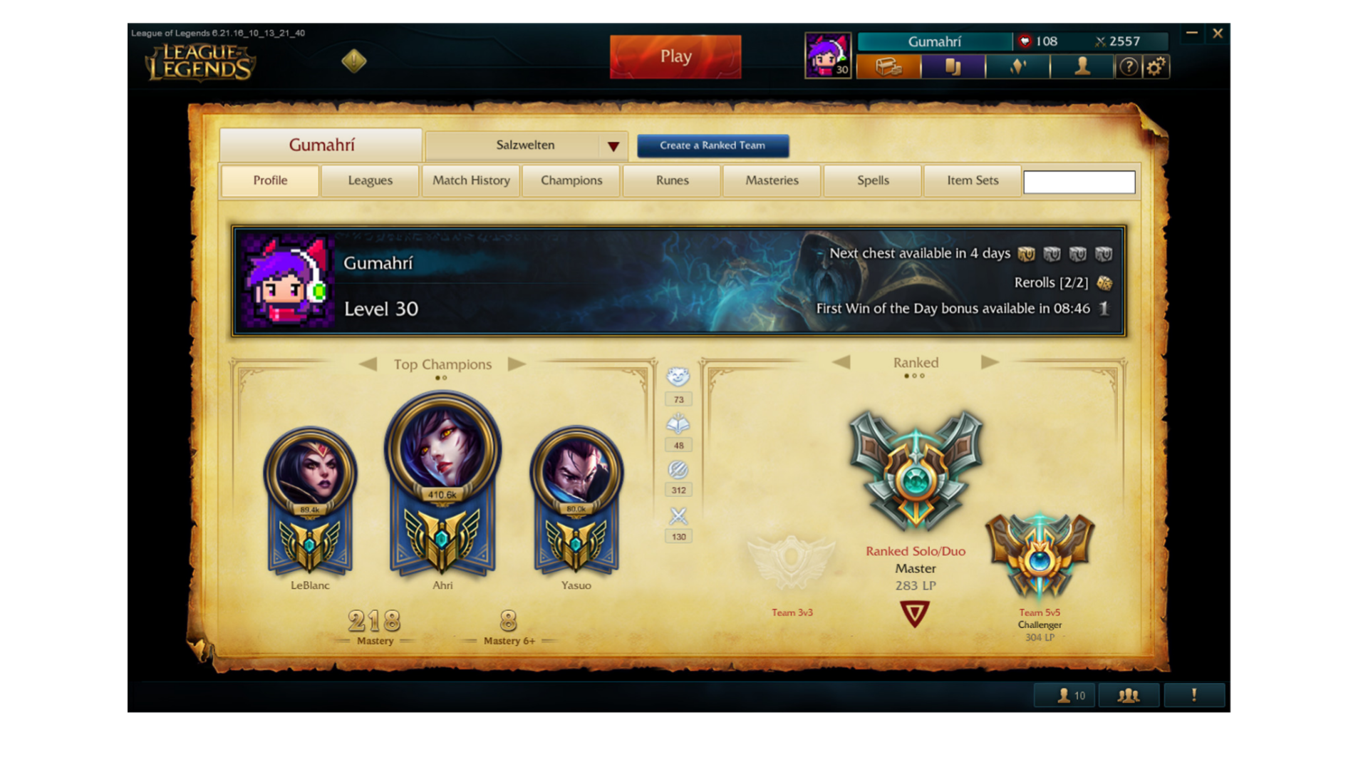 Gumahri wurde jedoch nicht nur durch durch die ESL bekannt, sondern auch durch die Solo-queue, wo seine außergewöhnlichen Spielzüge auf den Champions Ahri und Leblanc großes Aufsehen erregten.